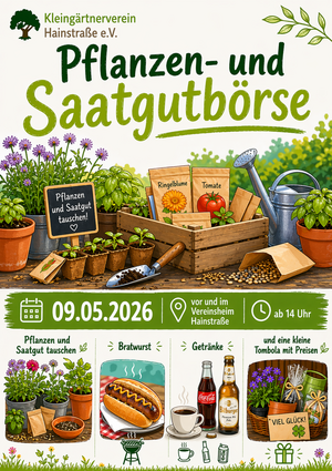 Am 09.05.2026 ist unsere nächste Saatgut und Pflanzenbörse geplant.